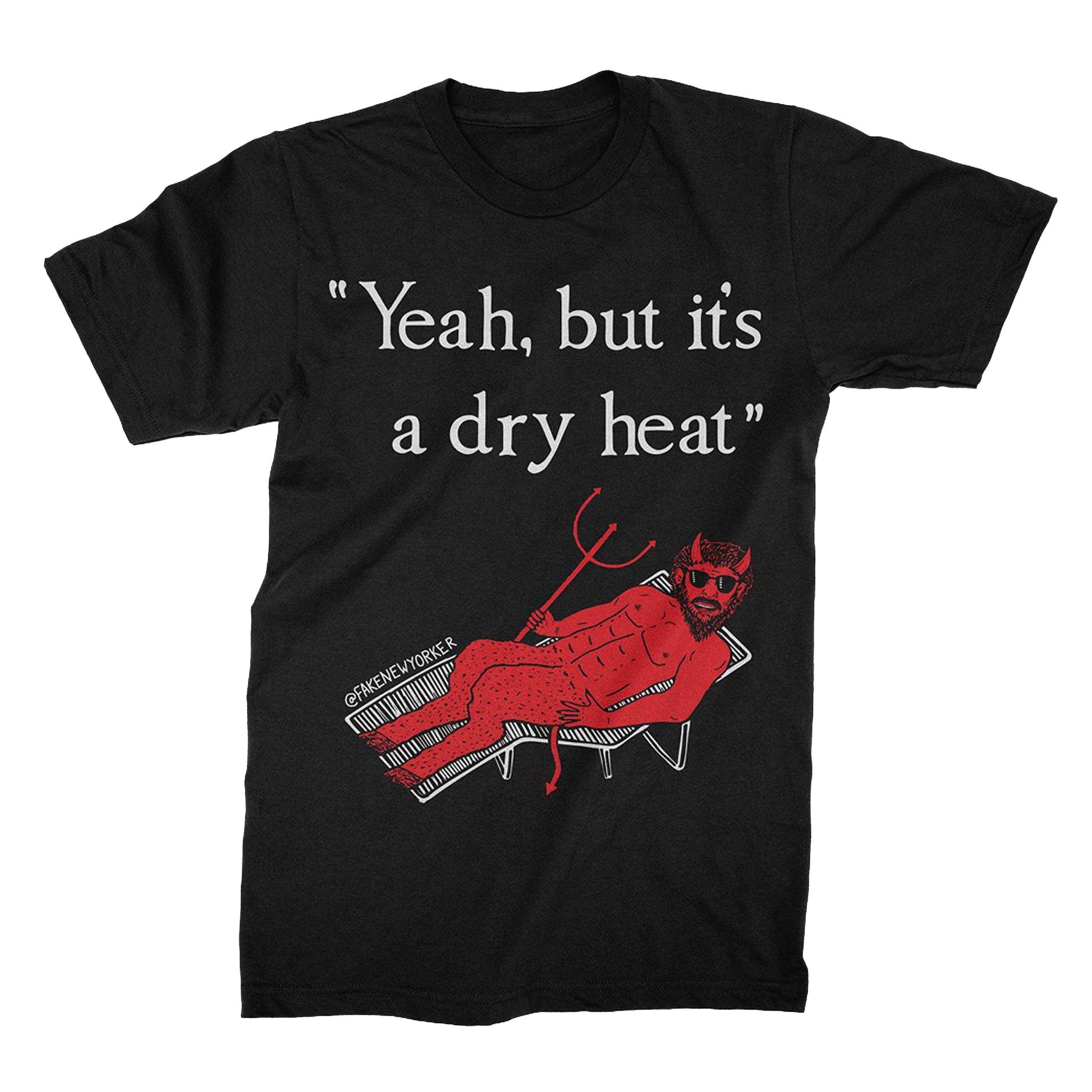 Dry Heat Adult Softstyle T-Shirt: 2 color silkscreen print on black tee, featuring original art by Carrie Rennolds @fakenewyorker.
