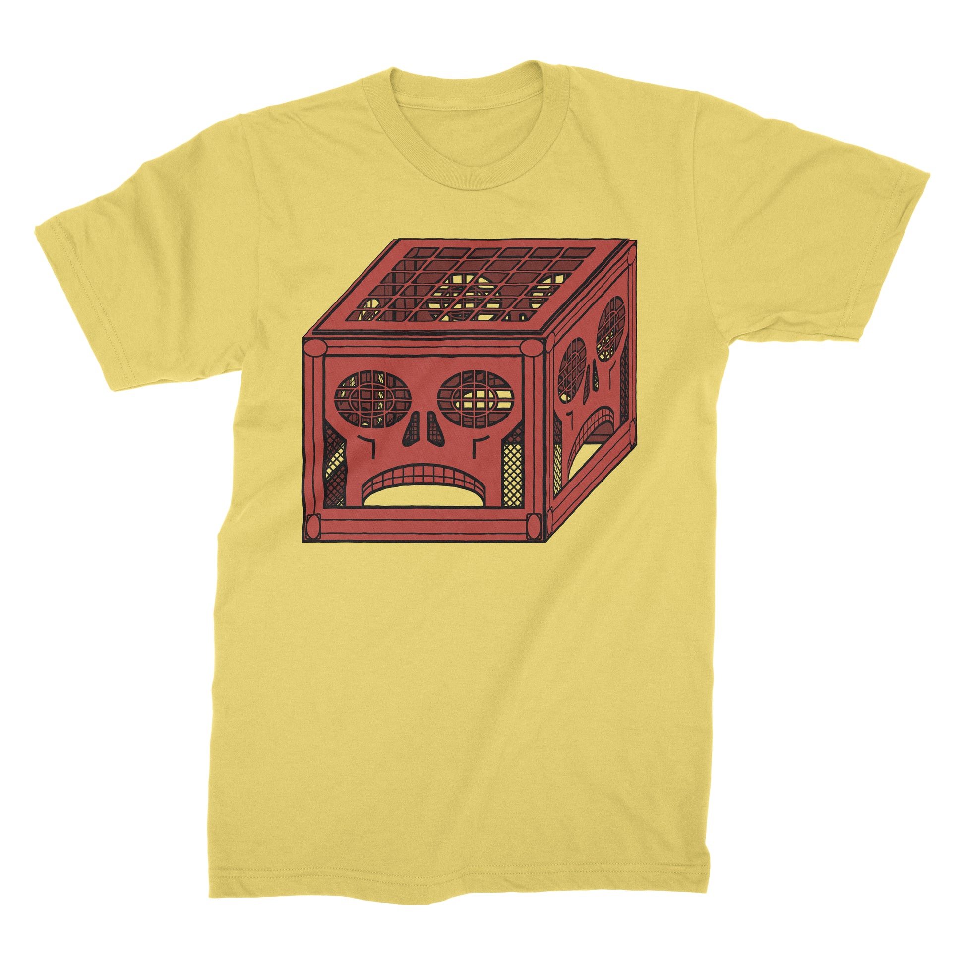 Skull Crate Adult Fine Jersey T-Shirt: 3 color silkscreen print on yellow tee, featuring original art by Chris Peters @ihaveanoseynose.